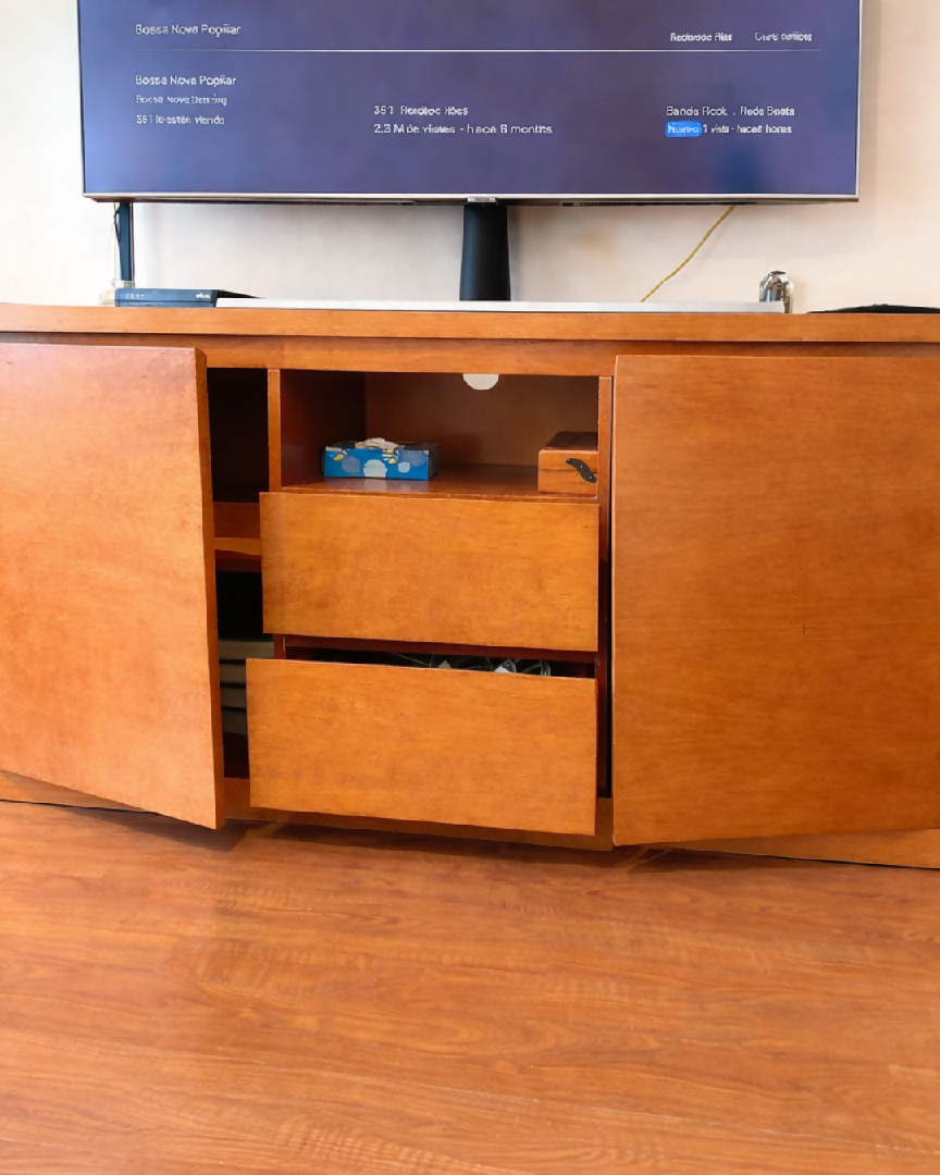 rack com duas portas e duas gavetas, ideal para sua sala de tv